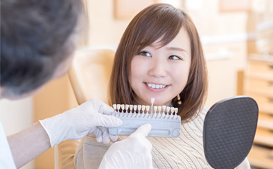 薄いセラミック素材を歯の表面に貼り付け、見た目の美しさを整える治療です。歯の色調や形、すき間の修正に適しており、自然な色味を再現できます。また、処置時の歯を削る量も少なく、負担を抑えたうえで、短期間で審美性を向上できる点も特徴です。