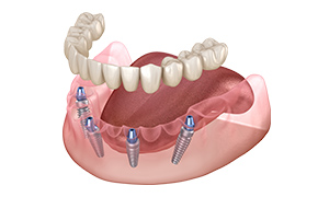 当院では、6本~8本のインプラントを用いた治療を推奨しております。4本でも治療はできますが、1本でも不安定になってしまうと、すべての埋入部分を再治療することになります。しかし、6本~8本のインプラントで噛み合わせを作ることで、悪くなっていない部位で噛み続けながらの再治療が可能になります。