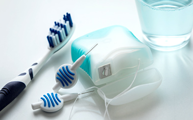 歯と歯の間を掃除するデンタルフロスや歯間ブラシといった、歯ブラシだけでは届きにくい部分をきれいにするための道具です。