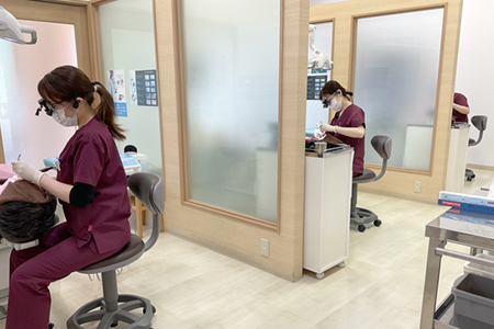 当院では、歯科衛生士の担当制を取り入れており、患者さんの状態を把握しているスタッフが健康管理をお手伝いします。同じ歯科衛生士が、唾液検査や口腔乾燥検査、位相差顕微鏡検査など、一人ひとりに合わせたケアプログラムを実施いたします。顔なじみのスタッフだからこそ、お悩みやご希望も伝えやすく、安心してご相談いただけます。