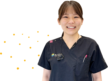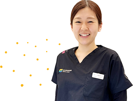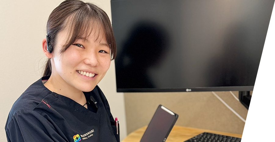 人と関わることが好きなので、幅広い年代のかたが来院される歯科医院で「患者さんが安心できる雰囲気」をつくりたいと思い、歯科助手という仕事を選びました。数ある中で当院に決めた一番の理由は、見学に来た際に感じた職場の温かい雰囲気と、分業がしっかりされていて「歯科助手の業務に専念できる環境」に魅力を感じたからです。